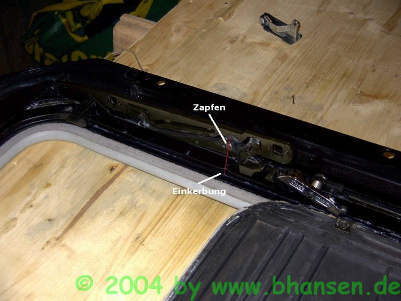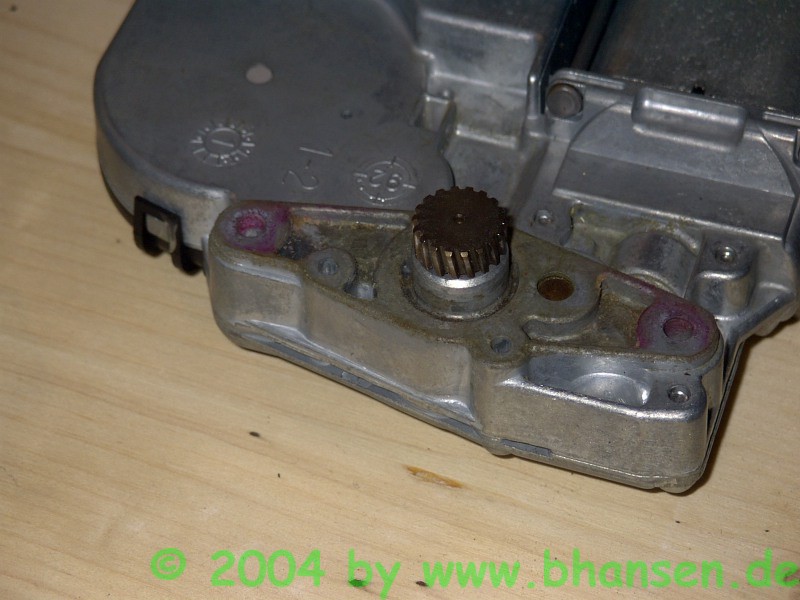Ich gehe nur auf die Montage einer Seite ein. Zunächst wird das vordere Stück der Kulissnmechanik in den Montagerahmen eingeschoben, den Seilzug mit Führung einschieben, das hintere Ende der Kulissenmechanik einschieben, dabei muß der Rasthaken in die Seilzugführung einhaken. Das gesamte Konstrukt nun nach vorne bis zum Anschlag am Montagerahmen schieben. Den Zapfen wieder durch die Kulissenmechanik stecken und mit dem Sprengring sichern. Die Führung mit Seilzug nun soweit verschieben, daß der Zapfen sich auf Höhe der Einkerbung am Montagerahmen befindet. Die Mechanik befindet sich nun in Nullstellung (Glasdeckel geschlossen). Mit der anderen Seite wird ebenso verfahren. Nun folgen die zwei kurzen Seilzüge mit der Kunststoffführung. Diese beiden Seilzüge haben die Aufgabe, den Schiebehimmel beim Ausstellen oder Öffnen des Glasdeckels nach hinten zu bewegen. Die Endstücke mit der Inbusschraube wieder montieren. Der Schiebehimmel kann nun ebenfalls wieder montiert werden, die Gleitfüße und die dazugehörigen Führungskanäle selbstverständlich vorher reinigen und schmieren. Die beiden Federn am Schiebehimmel anschrauben und an der Führung der kurzen Seilzüge einrasten. Vor uns liegt nun ein komplett montiertes Schiedeachmodul ohne montierten Antriebsmotor! Da die Mechanik sich in Nullstellung befindet, muß der Antriebsmotor ebenfalls in Nullstellung sein, bevor dieser wieder an die Montageeinheit geschraubt werden kann. Also: Motor und Schiedachschalter im Innenraum anschließen und den Motor in Nullstellung bringen. Man verfährt also, als wolle man das offene Schiebdach schließen. Der Antriebsmotor kann nun auf die Montageeinheit geschraubt werden. Vorher noch das Ritzel reinigen und auf Beschädigungen prüfen. Das Ritzel greift in die beiden langen Seilzüge und schiebt oder zieht daran. Falls das Ritzel beschädigt ist, muß der Motor getauscht werden Jetzt kommt die Stunde der Wahrheit: Die Trockenübung. Am Antriebsmotor befindet sich eine kleine Kurbel. Die Platikkappe am Getriebe zur Seite schieben, Kurbel einstecken und dann vorsichtig drehen. Die Mechanik sollte nun das (noch nicht montierte) Glasdach ausstellen oder verschieben. Wenn alles so wie oben beschrieben zusammengesetzt wurde, funktioniert die Mechanik ohne Probleme. Das Schiebedachmodul kann nun wieder in die Kaosserie eingebaut werden. Die Kurbel wieder abnehmen und nicht vergessen, die Kurbelöffnung mit der Plastikkappe zu schließen. Sonst läuft der Motor nicht! Noch ein Hinweis: Die Seilzugführung bricht nicht grundlos einfach so ab. Auf jeden Fall sollte man den kleinen Gummiring am Rasthaken kontrollieren und ggf. austauschen. Das Schiebedach muß auf jeden Fall "geschmeidig" in alle Stellungen zu öffnen sein. Wenn beim Öffnen (versenken, nicht schrägstellen) laute Geräusche (Knacken) auftreten, dann den Rasthaken und den Gummiring kontrollieren. Es besteht sonst die Gefahr, dass die Seilzugführung wieder abbricht! |